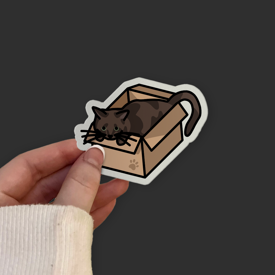 Gift For Cat Lovers. A sticker of a choclate brown cat in one of their favourite places: a cardboard box!. Perfect for journalling, sticking on your laptop, or putting in your phone case.