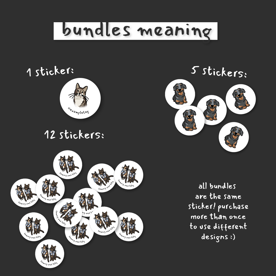 - Please note that if buying a bundle, they will all be the same design i.e. if purchasing the 50 stickers bundle, they will all be identical stickers.