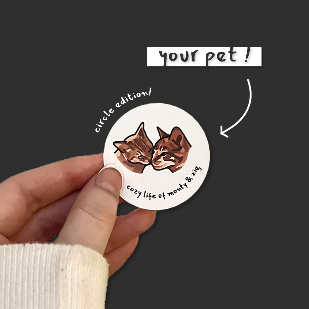 Gift For Cat, Dog or Pet Lover! Customised circle sticker of your pet as a cartoon. Perfect for journalling, sticking on your laptop, or putting in your phone case.