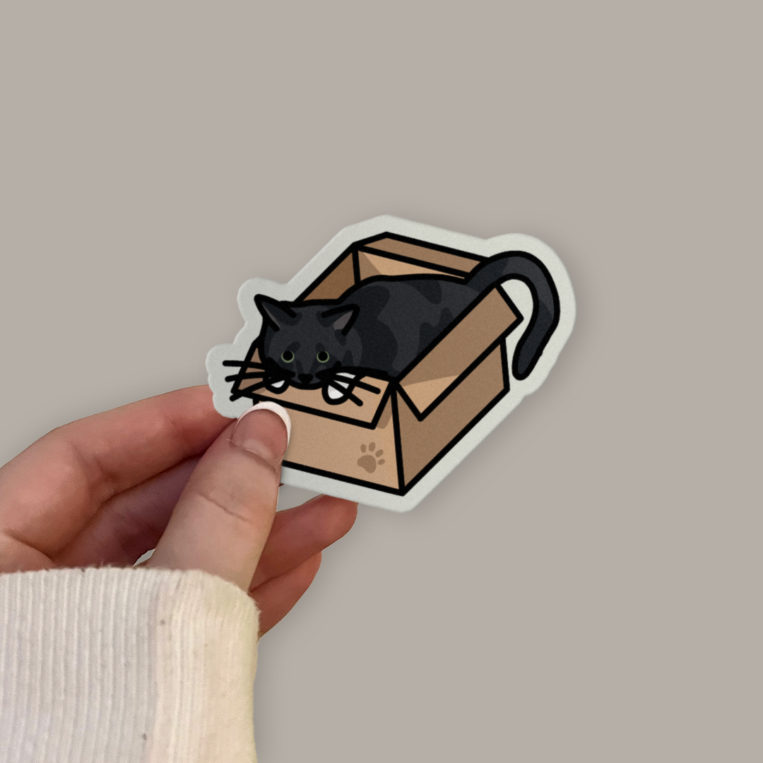 Gift For Cat Lovers. A sticker of a black and white tuxedo cat in one of their favourite places: a cardboard box!. Perfect for journalling, sticking on your laptop, or putting in your phone case.