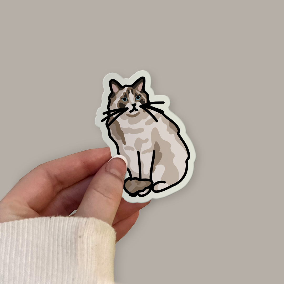 Gift For Cat Lovers. A sticker of a ragdoll cat in a classic sitting position. Perfect for journalling, sticking on your laptop, or putting in your phone case.