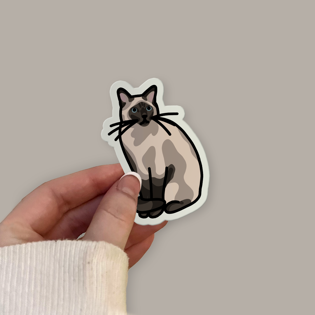 Gift For Cat Lovers. A sticker of a siamese cat in a classic sitting position. Perfect for journalling, sticking on your laptop, or putting in your phone case.
